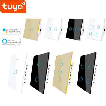 Tuya App Voice Control remoto EU UK 220V 1/2/3/4 Gang Universal Glass Touch Wall Smart Light Switch WiFi para Hotel Home Use